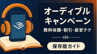 Audibleの最新キャンペーンと公式仕様を一次情報で検証。2か月無料(〜2025/10/14)、プライム会員向け3か月無料(2025/6/17〜7/31)、会員30%OFF、休会(12か月に1度/1〜3か月)、返品は原則不可、iOSは単品購入非対応、退会はPCサイト/ストア課金は各ストアで管理。Amazon Music Unlimitedの「毎月1冊」特典も解説。表示=対象と前日までの手続きを軸に、最安で失敗しない実務手順をまとめました。
